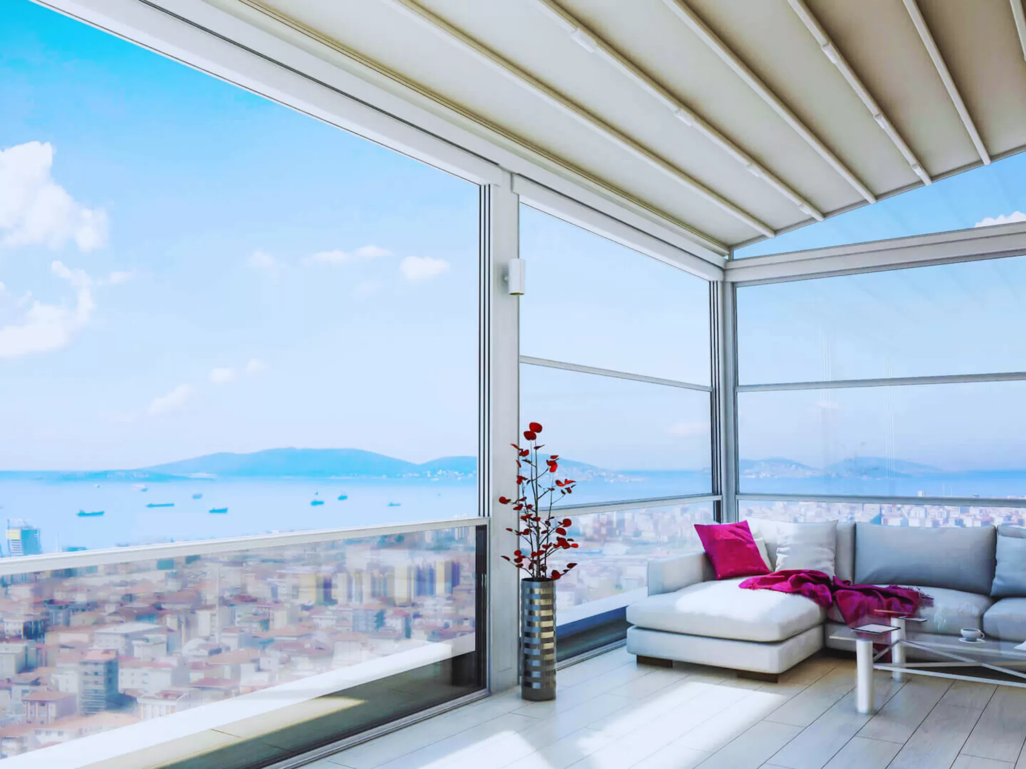 Dört Mevsim Kullanımı: Giyotin Cam Sistemleri, dört mevsim boyunca dış mekanı kullanmanızı sağlar. Sert hava koşullarına dayanıklı cam ve çerçeveler kullanılarak üretilirler.